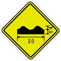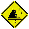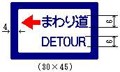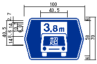 ウ 道路に設置する「駐車場」、「総重量限度緩和指定道路」、「高さ限度緩和指定道路(118の4-A・B) 」及び「まわり道(120-A) 」を表示する案内標識並びに警戒標識については、道路の形状又は交通の状況により特別の必要がある場合にあっては、図示の寸法(イに規定するところにより図示の横寸法を拡大する場合にあっては、当該拡大後の図示の寸法)の1.3倍、1.6倍又は2倍に、それぞれ拡大することができる。